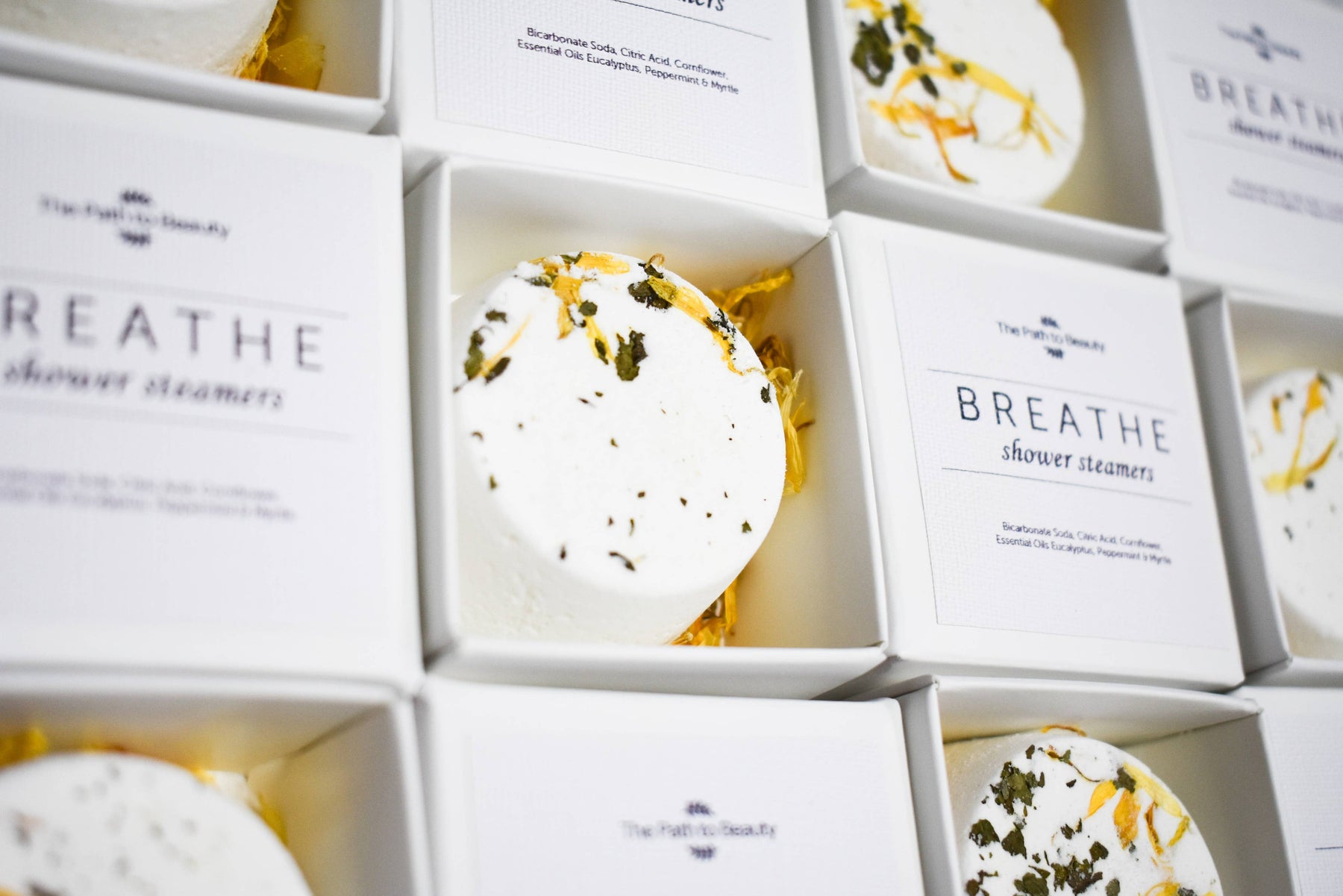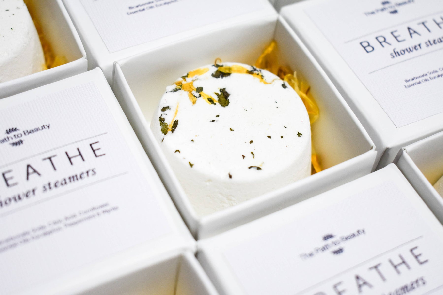 Use BREATHE Shower Steamers to help unblock the nasal passages. Place on the floor of your shower and inhale the essential oil’s of Eucalyptus, Peppermint & Myrtle. Did you know that Shower Steamers can also be used in your bath!!! Packaged in single boxes, perfect for gifting or spoiling yourself. ~Relax Unwind Inhale & Enjoy~